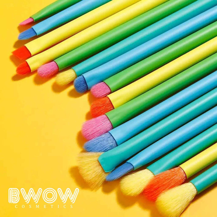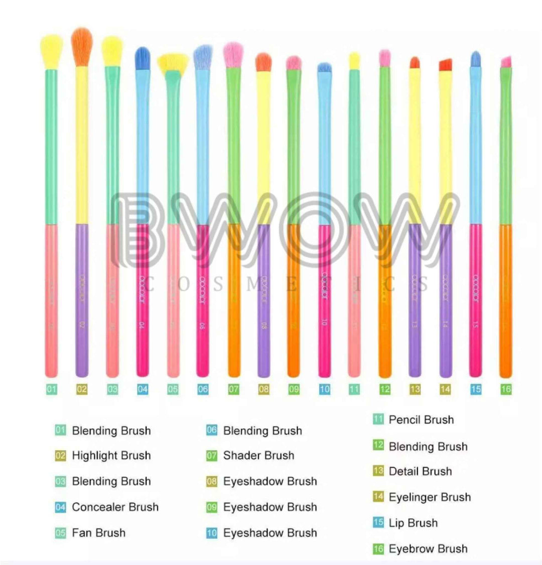 BWOW yourself with the 16-piece vegan Makeup Brush Set from BWOW Cosmetics, a vibrant and versatile collection designed for teens who love to play with colour. This makeup brush set is perfect for travel and makes an excellent gift. Crafted with precision and care, these brushes ensure a flawless and enjoyable makeup experience. Each brush features soft, dense bristles that effortlessly pick up and blend product, while the unique brush handles and durable aluminium tubes provide a comfortable and stylish application.
